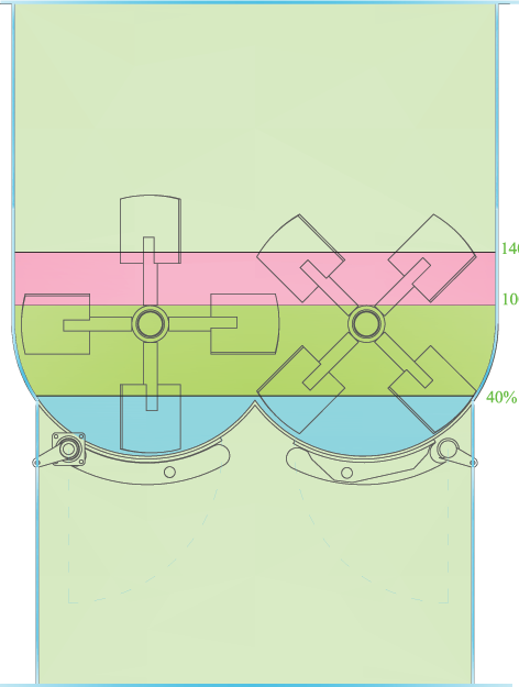 Filling level is another feature of this mixer, as it can work equally well with 40% overfilling and 60% under filling of its nominal filling level. Nominal filling level is the level upto the shaft of the mixer.